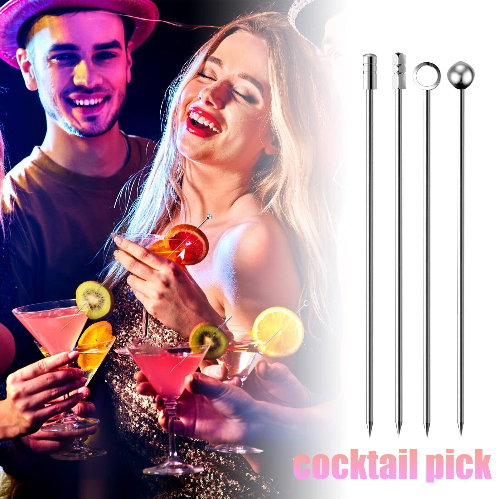 材質:304ステンレス サイズ:約11㎝ 画像をご参照ください。 カクテルピックのトップの形が違うので、ほかの飲み物と混同する心配がありません。シンプルなシルバーなので、カクテルにもジュースにも適しています。 食品級ステンレスで作られて、作りがしっかりしていて変形しにくい。先端が尖っているので、フルーツ、野菜、デザートを刺しやすい。再利用できて経済的です。 パッケージ:カクテルピック16本セット。