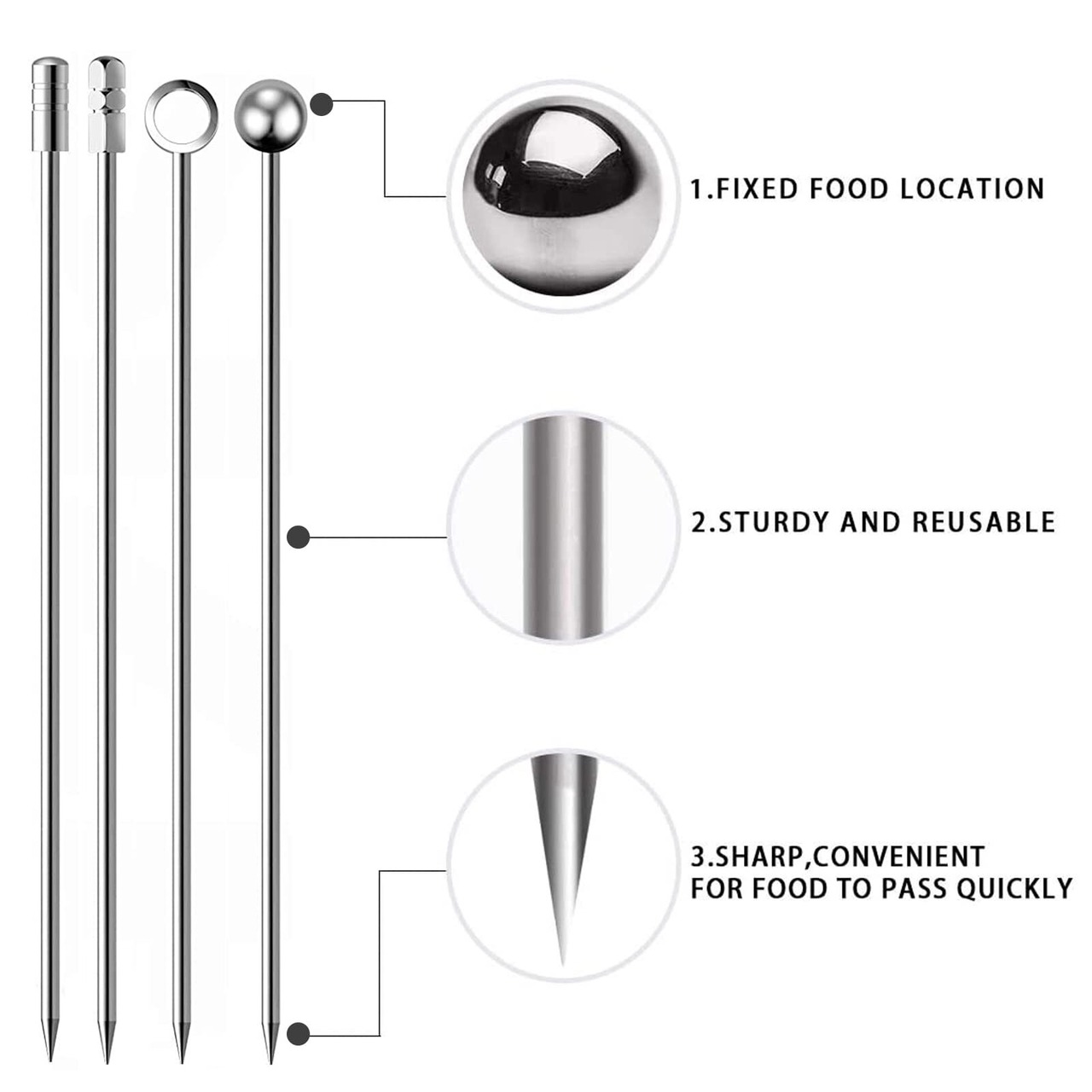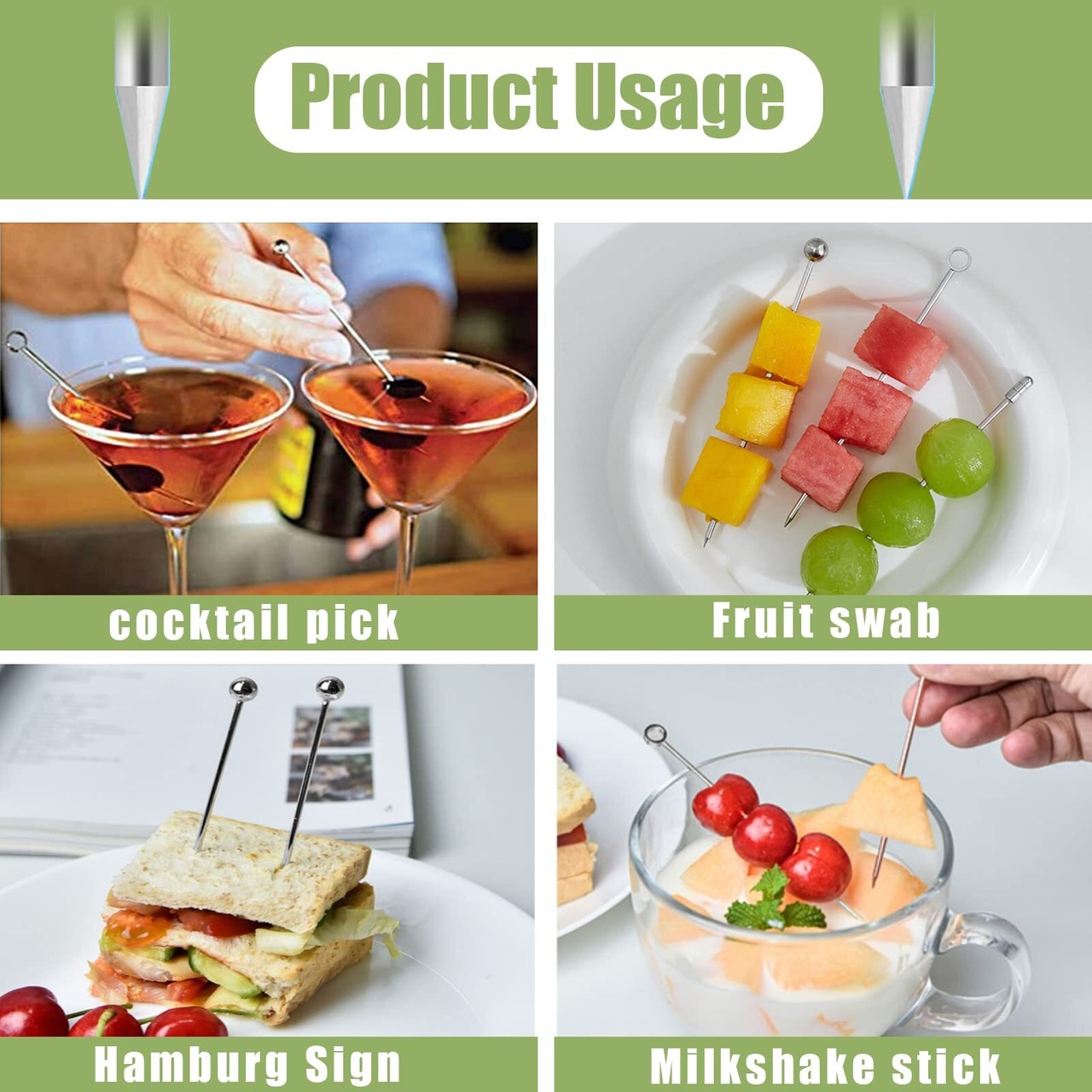 食品級ステンレスで作られて、作りがしっかりしていて変形しにくい。先端が尖っているので、フルーツ、野菜、デザートを刺しやすい。再利用できて経済的です。