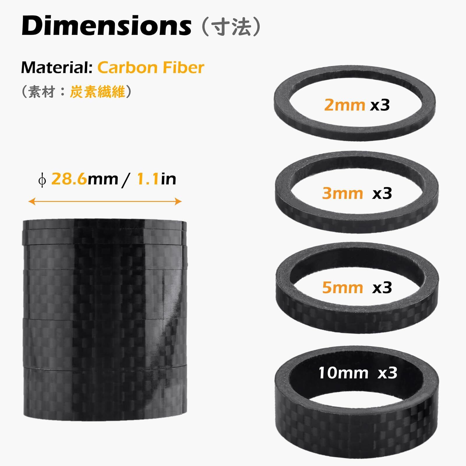 ️ 素材:カーボン製ヘッドスペーサー、硬度が高く、変形しにくいです。軽量で強度、靭性、耐食性に優れています