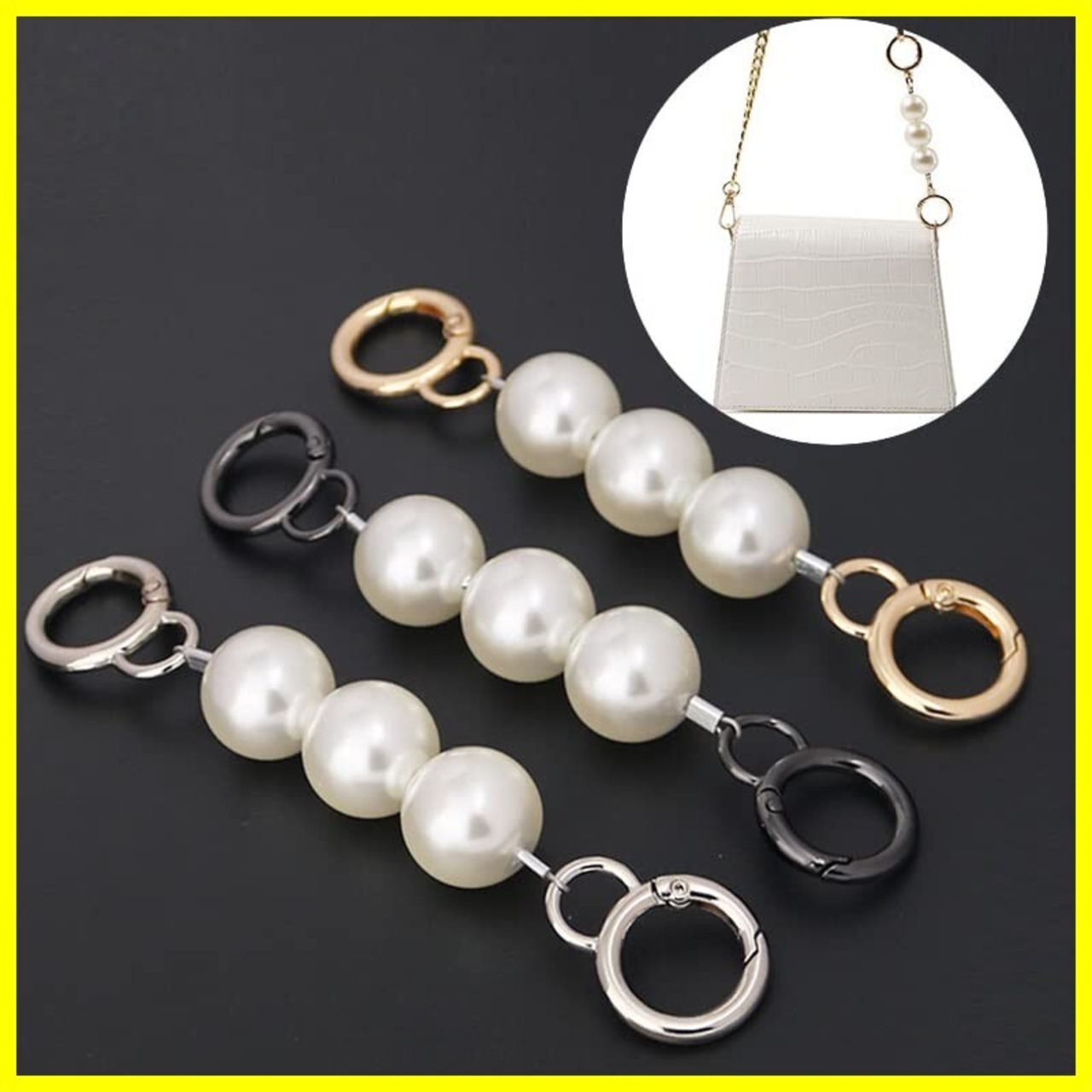 ►【包装】パール バッグ チェーン 持ち手は3個がありますので、耐久性が良くて長い時間を使用してもオッケーです。