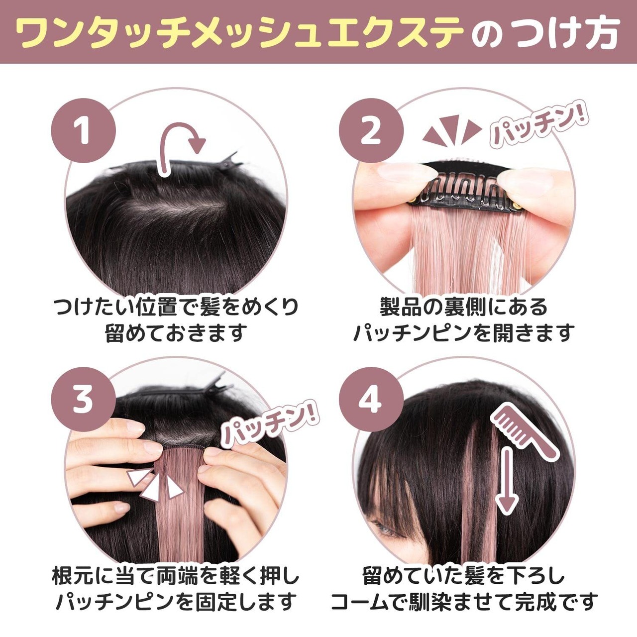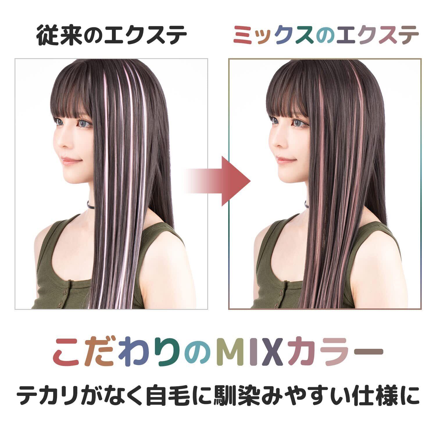 [クラッセ] くすみカラー ワンタッチメッシュエクステ 4本セット ミックスカラー 混色 マット 自然 ストレート ベージュB