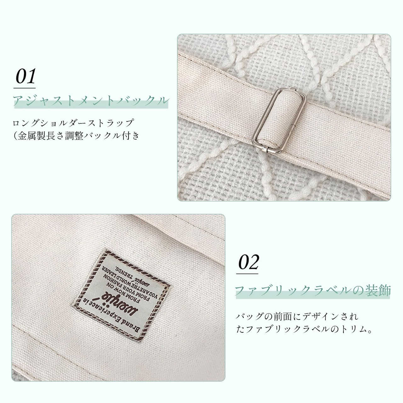 品質:キャンバス素材はくったりと柔く、肩にかけた際も馴染みやすく ストレスフリーな持ち生地。