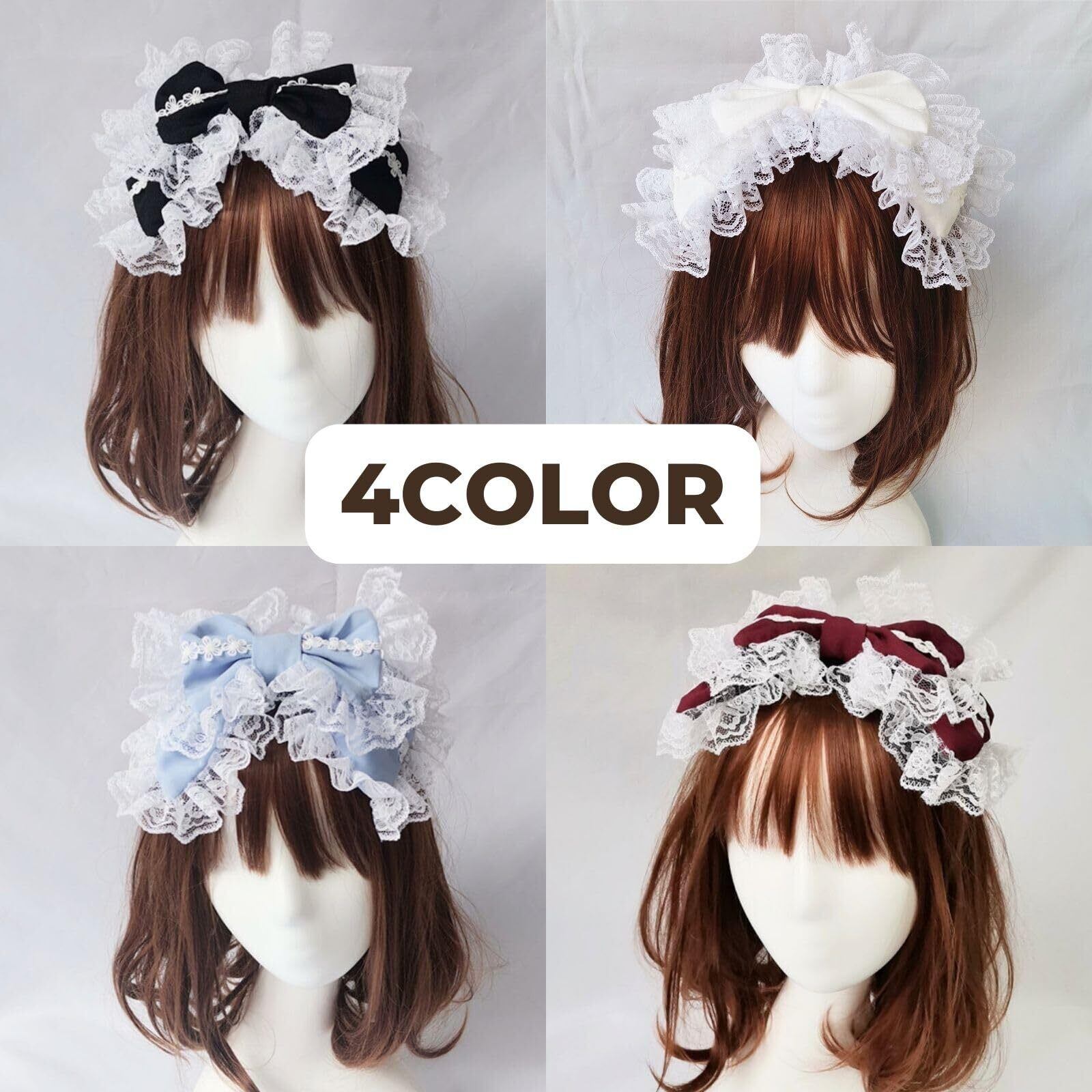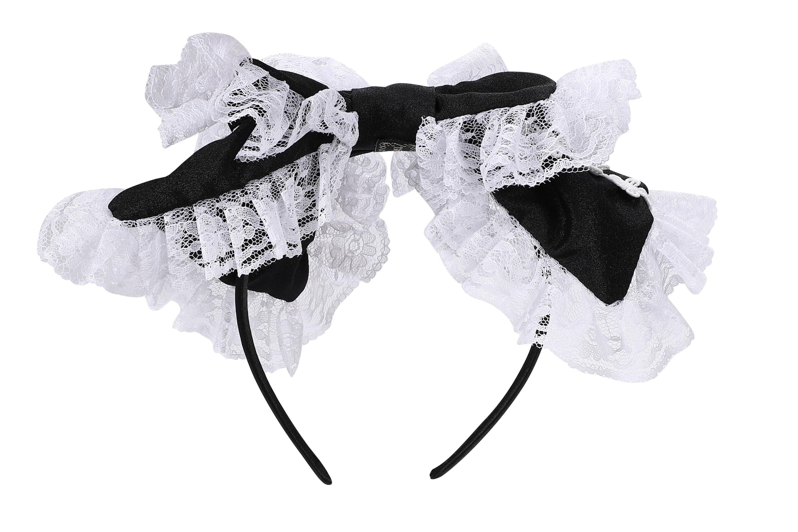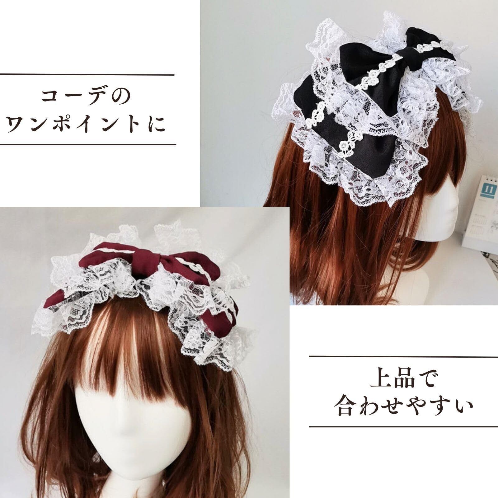 [HARGIO] カチューシャ レディース ヘアバンド ヘアアクセサリー ヘッドドレス リボン レース ブラック ホワイト レッド ブルー 黒 白 赤 水色 地雷系 量産型 姫 韓国 ロリータ ゴスロリ ガーリー ヘアアクセ かわいい おしゃれ 人気 (ブラック)