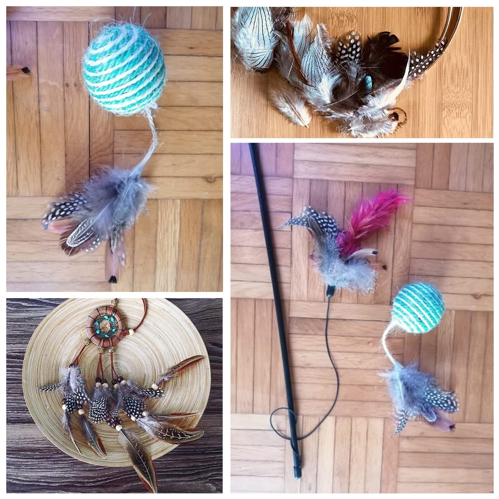 【手芸羽根パーツ】手芸用羽根として、ドリームキャッチャーの手作り、イヤリングなどアクセサリー作り、帽子や洋服の装飾、猫じゃらしや猫のおもちゃの手作りなど幅広い用途にお使いいただけます。