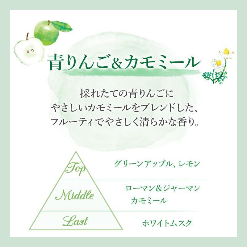 GA&CM:採れたての青りんごにやさしいカモミールをブレンドした、フルーティでやさしく清らかな香り。