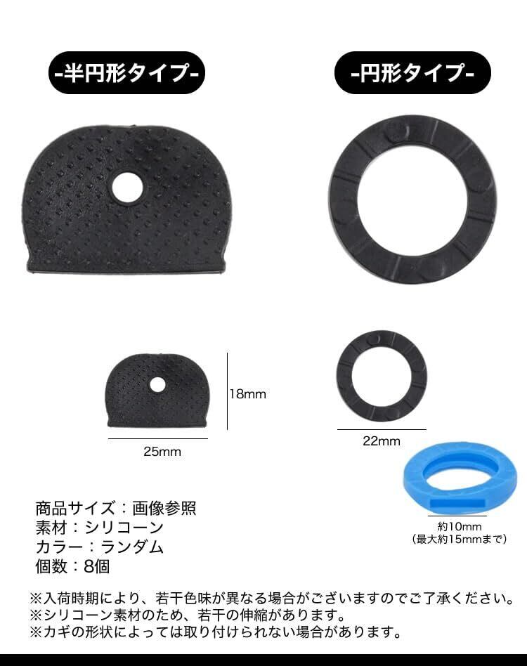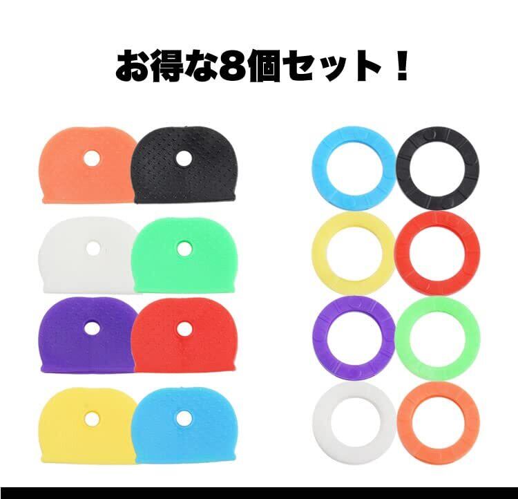 prendre キーカバー シリコン 8個セット キーキャップ 色 識別 整理 目印 キーカバー 装着 色分け 鍵 キャップ ゴム キーナンバー 隠し 防犯 通し穴 キーヘッド 円形 (円形) PR-KEYCA-EN