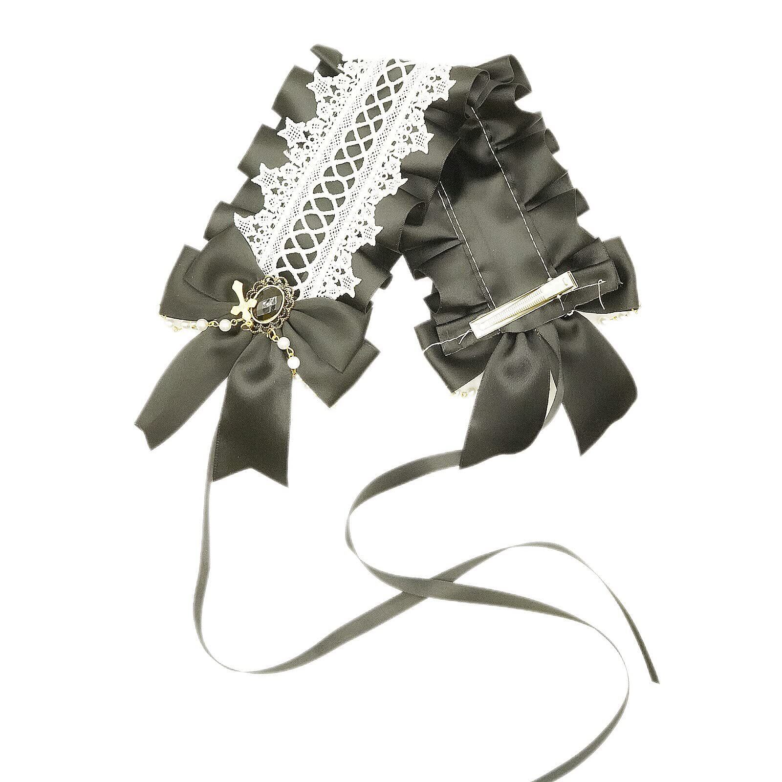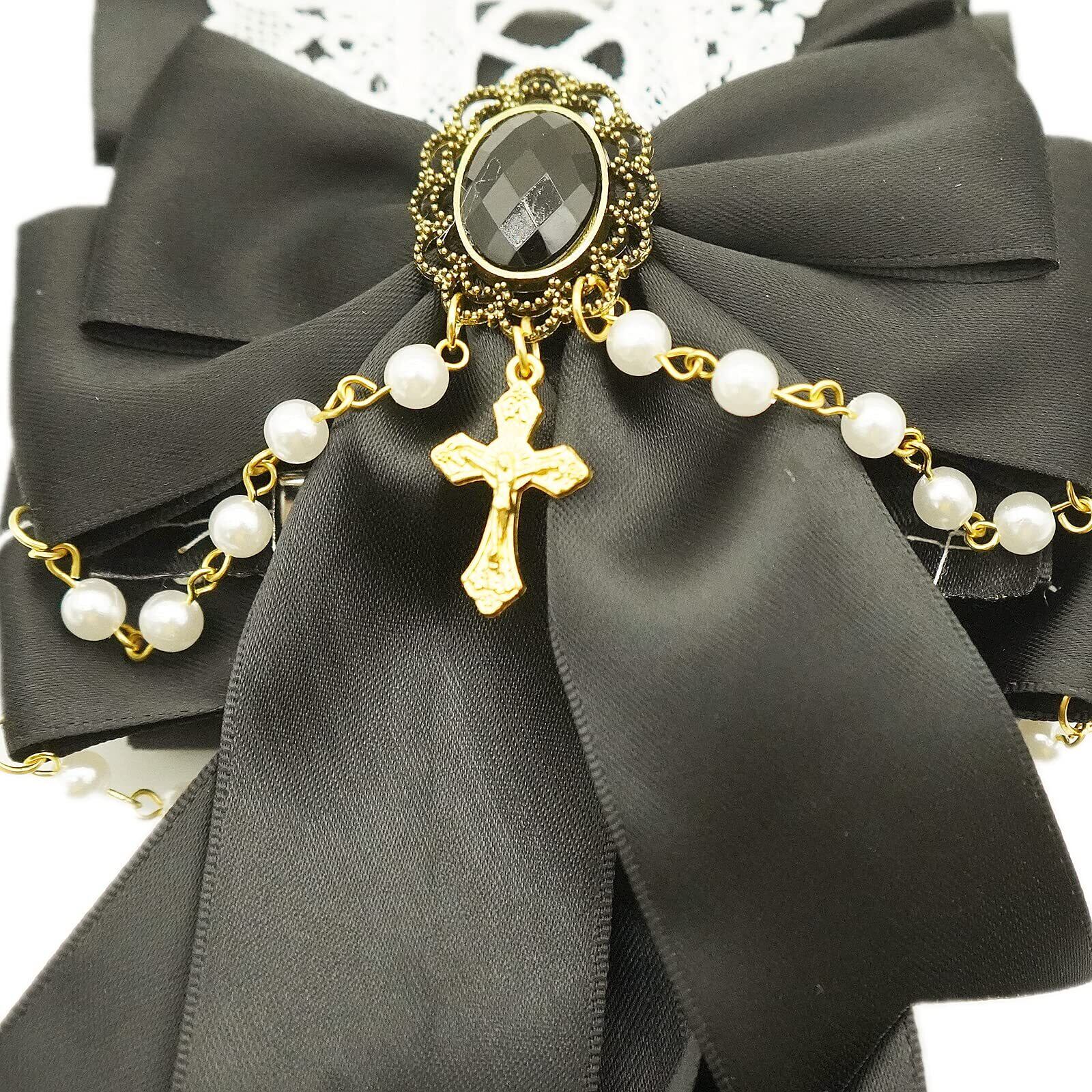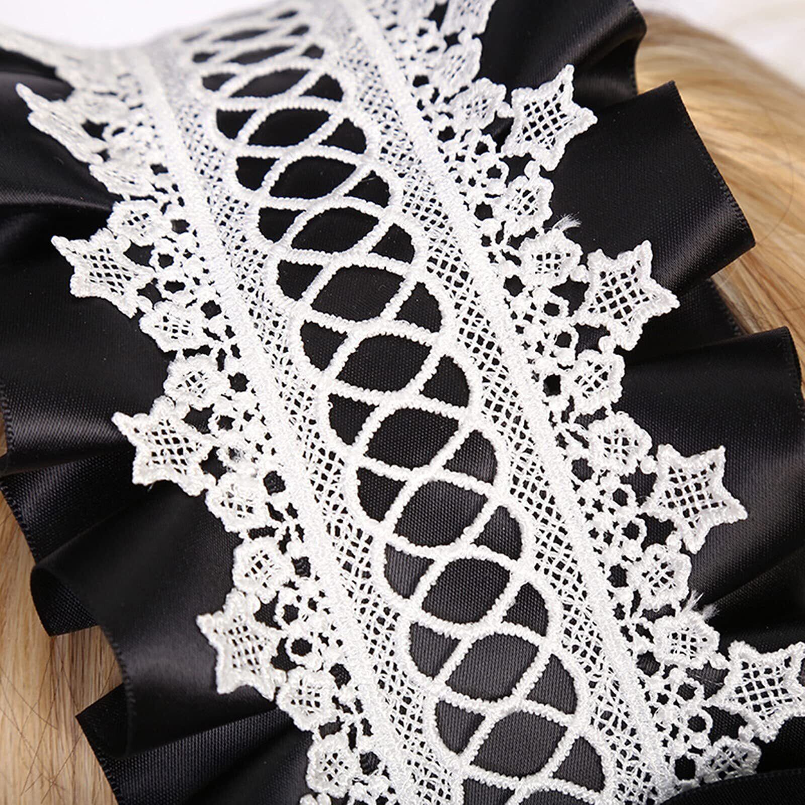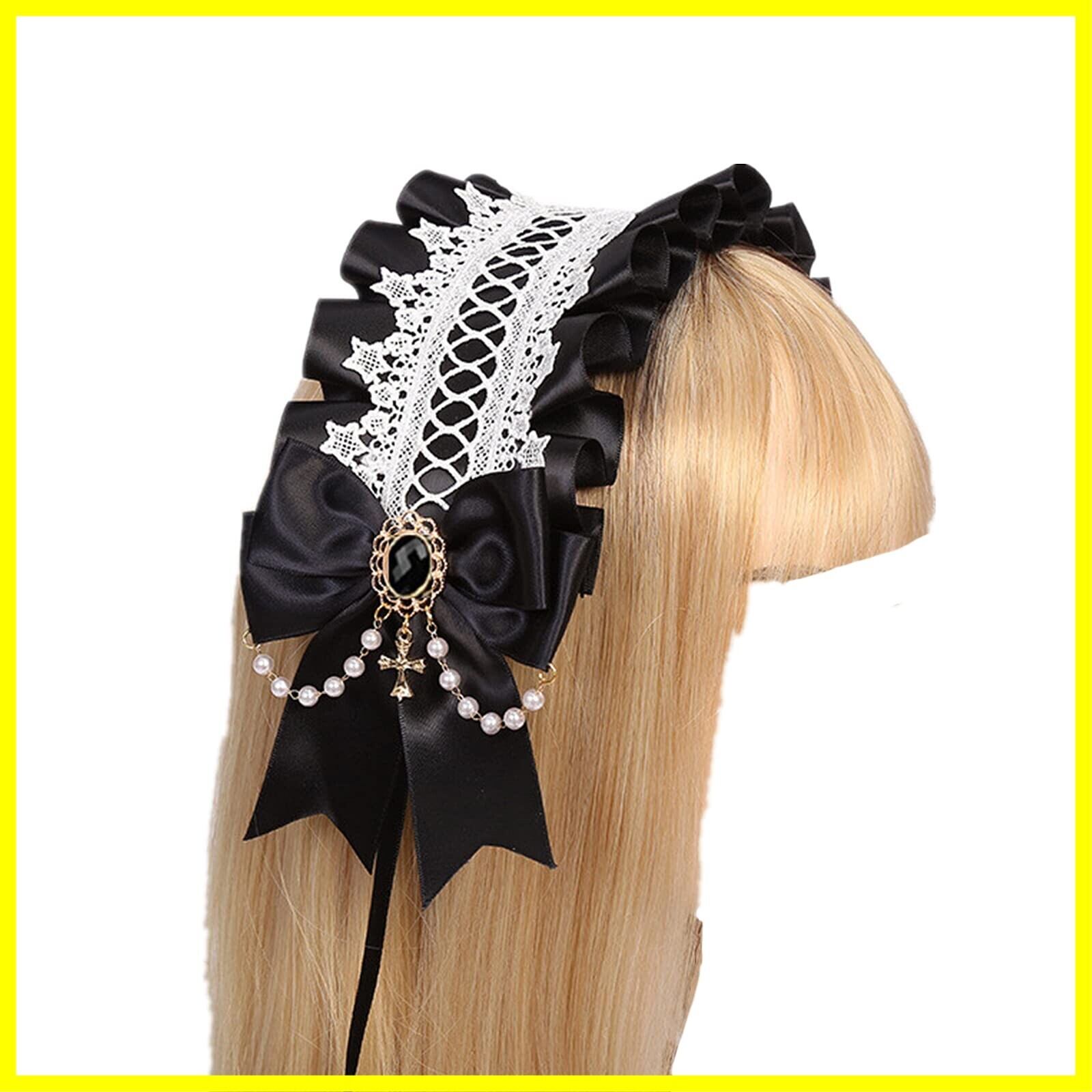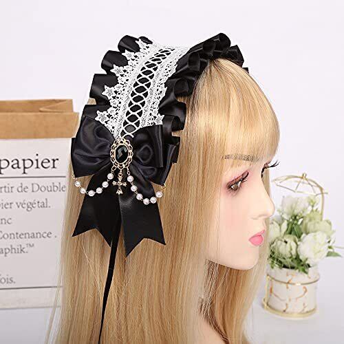 ヘッドドレス ロリータ ゴスロリ カチューシャ かわいい レース リボン チャーム付き ヘアバンド 髪飾り ヘアアクセサリー メイド風 コスプレ パーティー (ブラック)