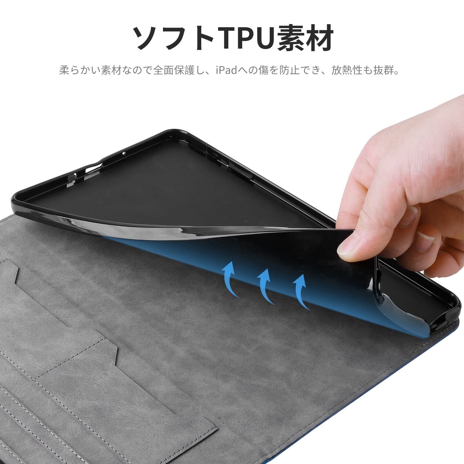 【上質な素材】:iPad 9/8/7 ケース (10.2インチ 2021/2020/2019モデル 第9/8/7世代用) ケースを柔軟なPUレザーとtpu材質を採用しており、柔軟性と耐衝撃性に優れ、四隅に緩衝機能付き、落としてもiPad 9世代 ケースを全面保護することができます。