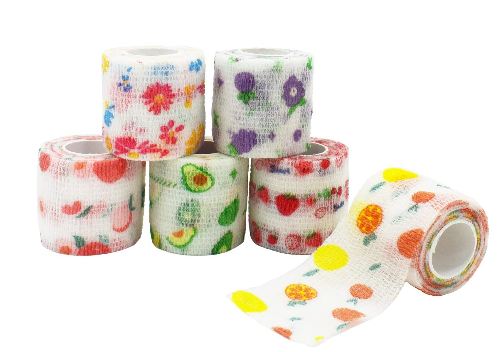 Edostree ペットフレックス 粘着包帯 自着性伸縮包帯 弾力包帯 バンテージ ペット 犬 猫 伸縮 防水 不織布 6点セット 5cmx 4.5m DSGBD-04