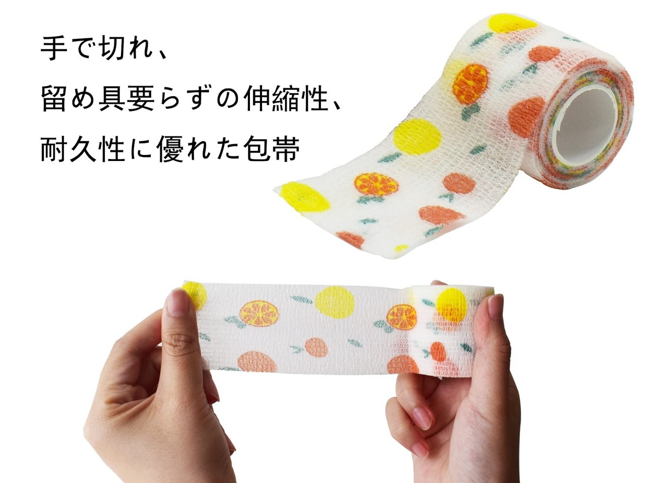 手で切れ、伸縮性、耐久性に優れた包帯。留め具もいらない親切設計!被毛や皮膚にべたつかず、手軽に扱えます