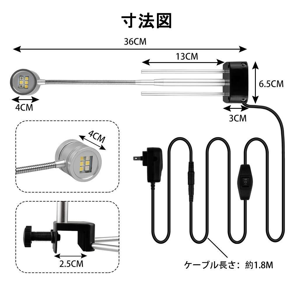 スタンドの角度は85°、アームの長さは31から38cmまで調整でき、そのうちソフトアームの長さは12CMです。※普通の小型水槽と盆栽は殆ど対応できます。水槽と盆栽のサイズに合わせてご購入ください。