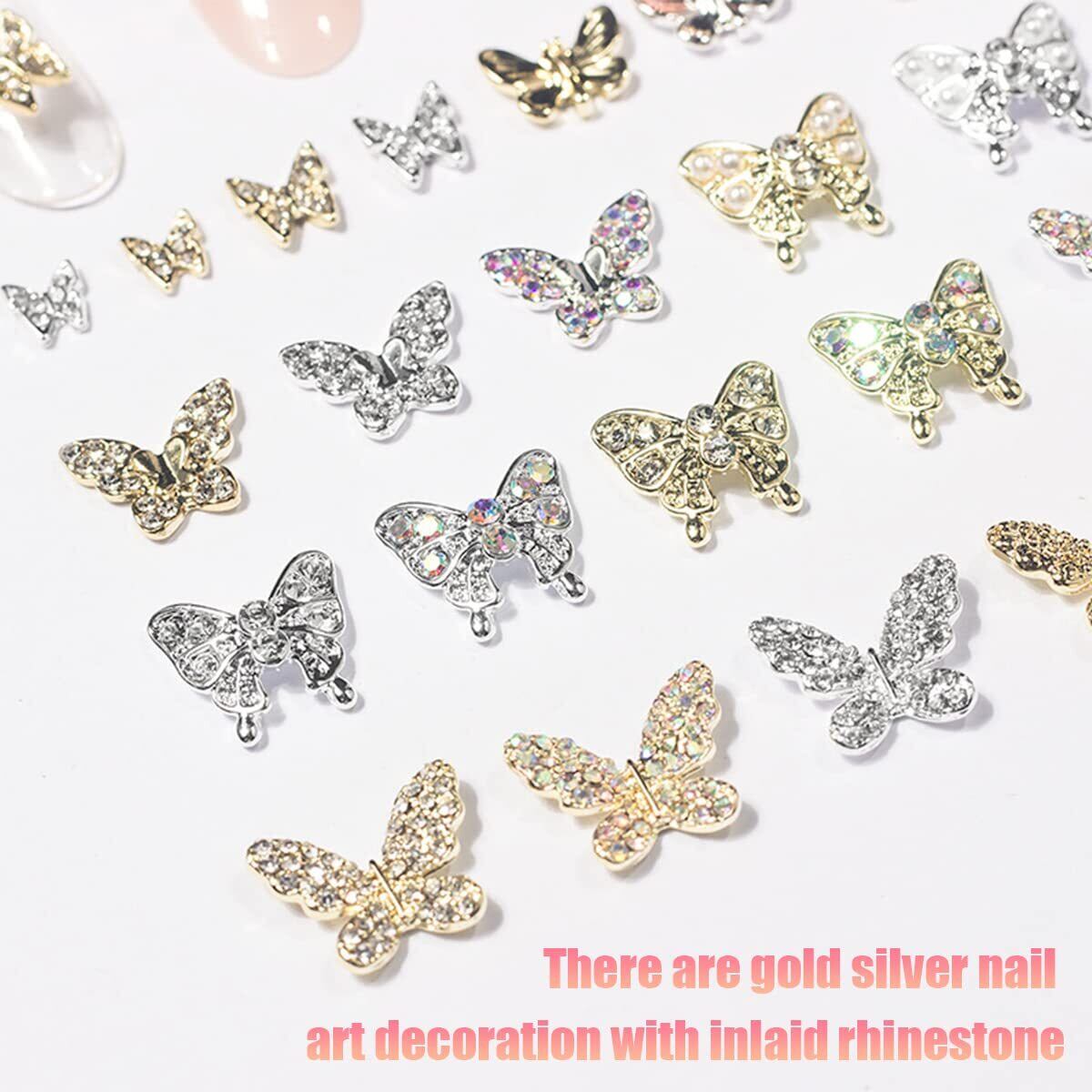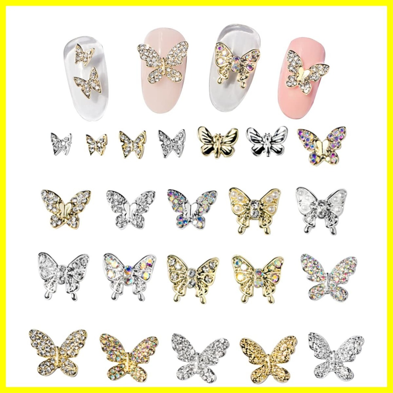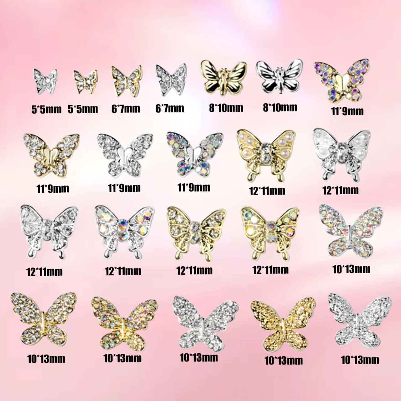 【素材】蝶の飾りは環境に優しい亜鉛合金製で、蝶の羽の部分にはこのラインストーンをあしらい、よりスタイリッシュで豪華に仕上げました。 合金は丈夫で耐久性があり、ネイルサロンや初心者の方にも適しています。