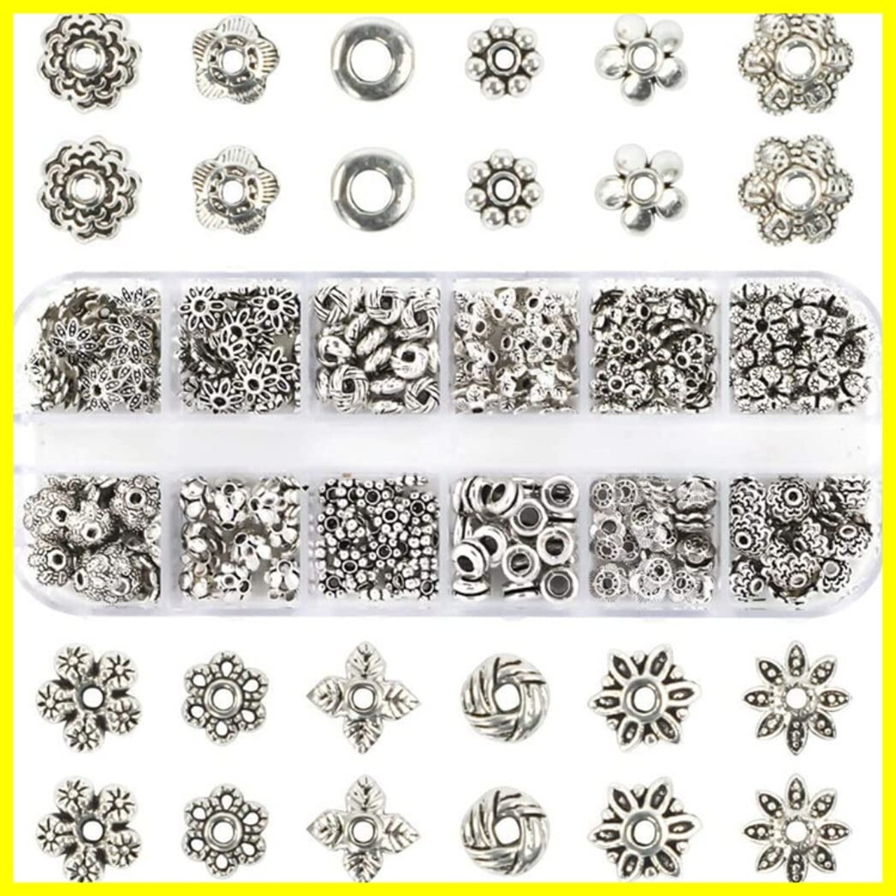 HappyHome ブレスレット スペーサー シルバー パーツ 12種 360個入り アクセサリークラフト 金具 DIY 手芸パーツ