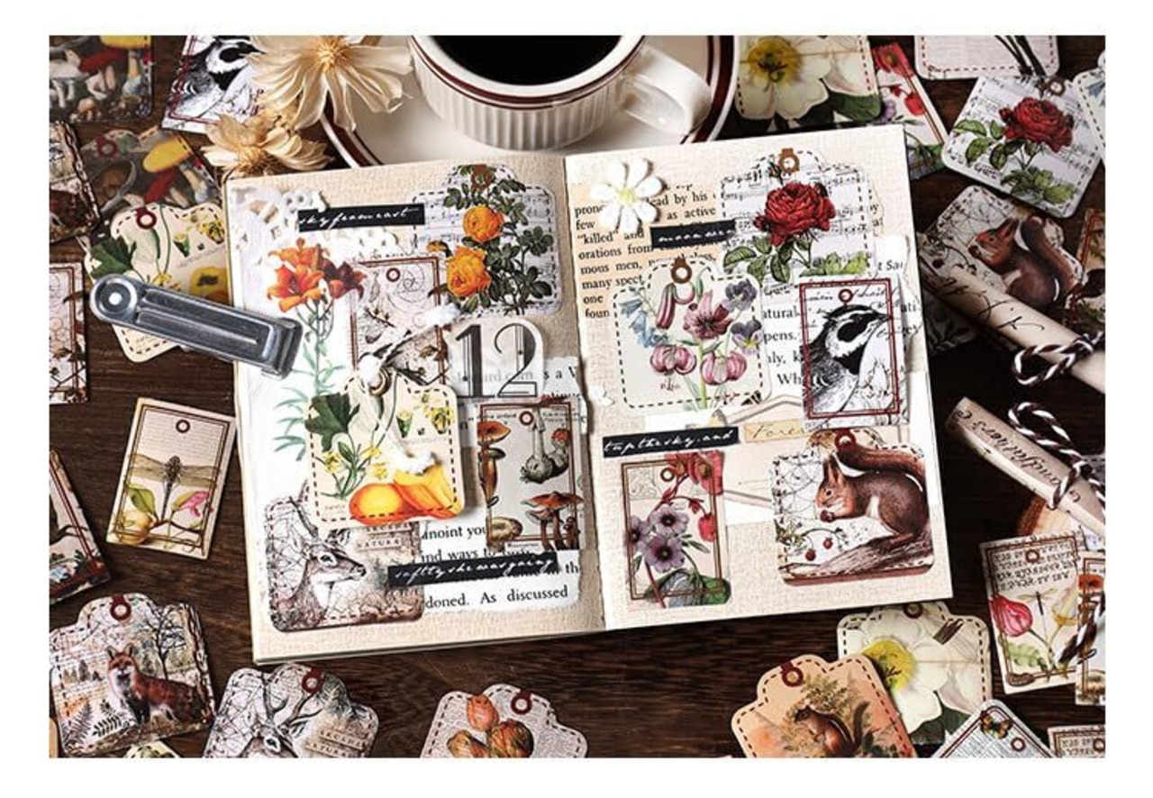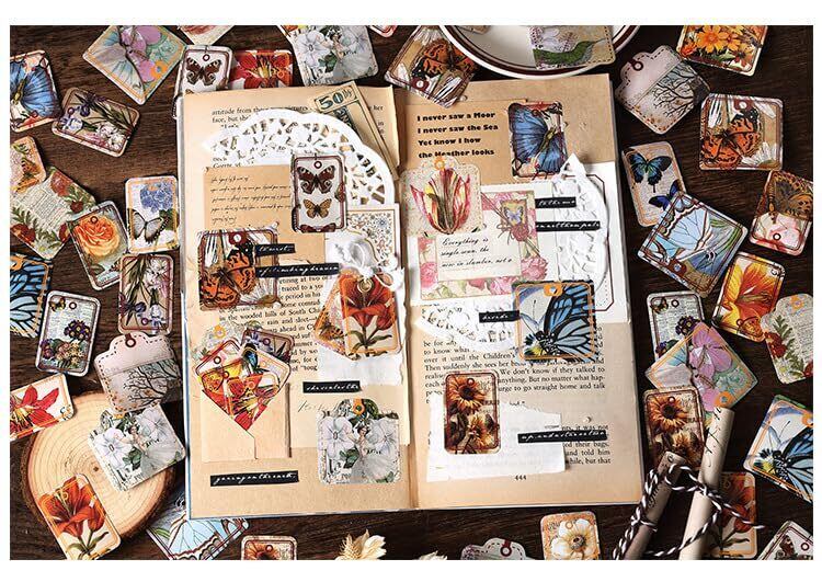 92枚 ブランド フレークステッカー シール コラージュ 素材 ペーパー 素材紙 レトロ かわいい 花、レモン、イチゴ、果物 PET 耐水性 韓国 シール帳 ,メモ用紙ノート素材、日記装飾用品 (jijishanlin)