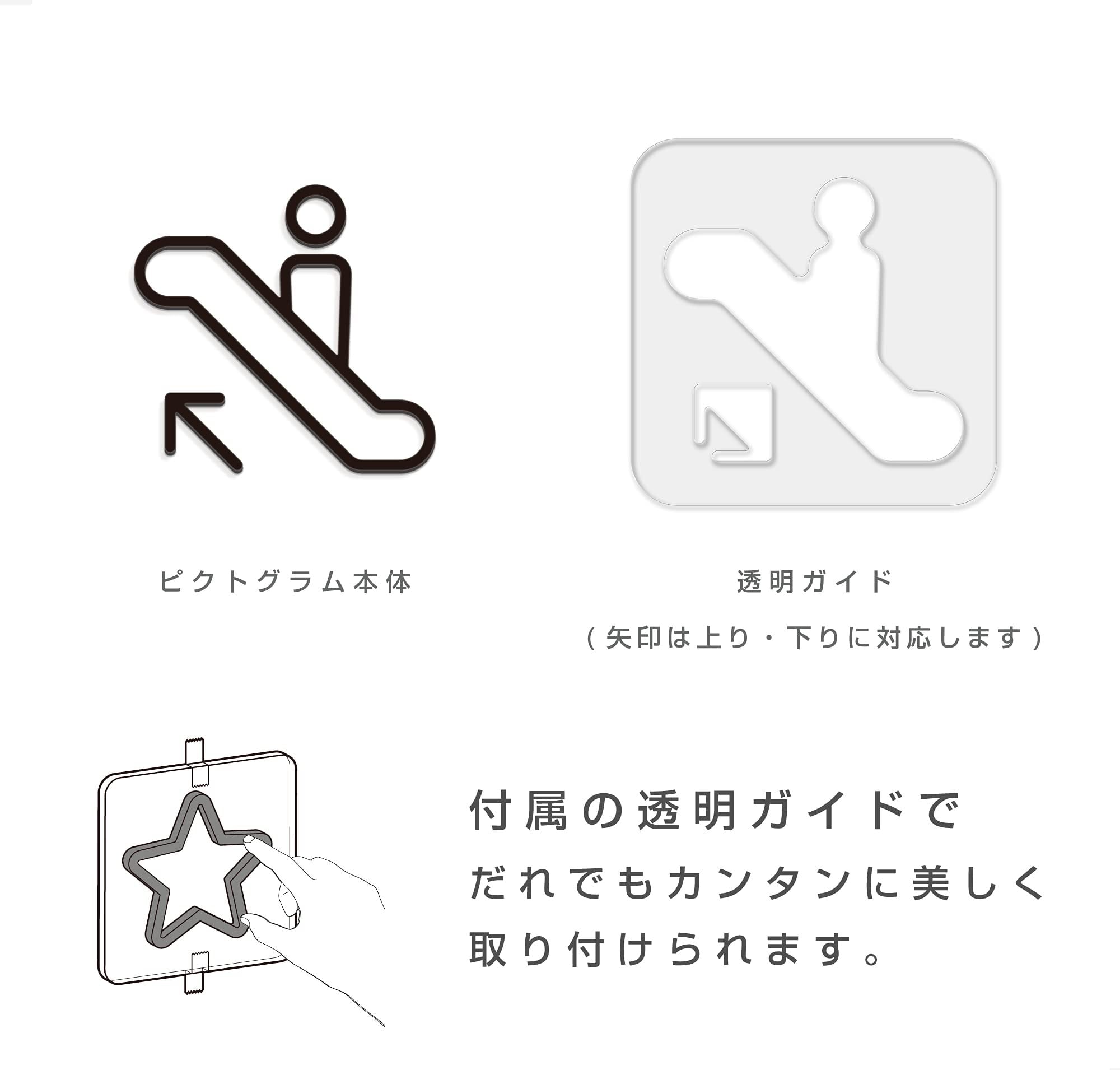 PICTOCLUB escalator L エスカレーター(左上り/右下り) ピクトグラム案内表示サインプレート マットブラック