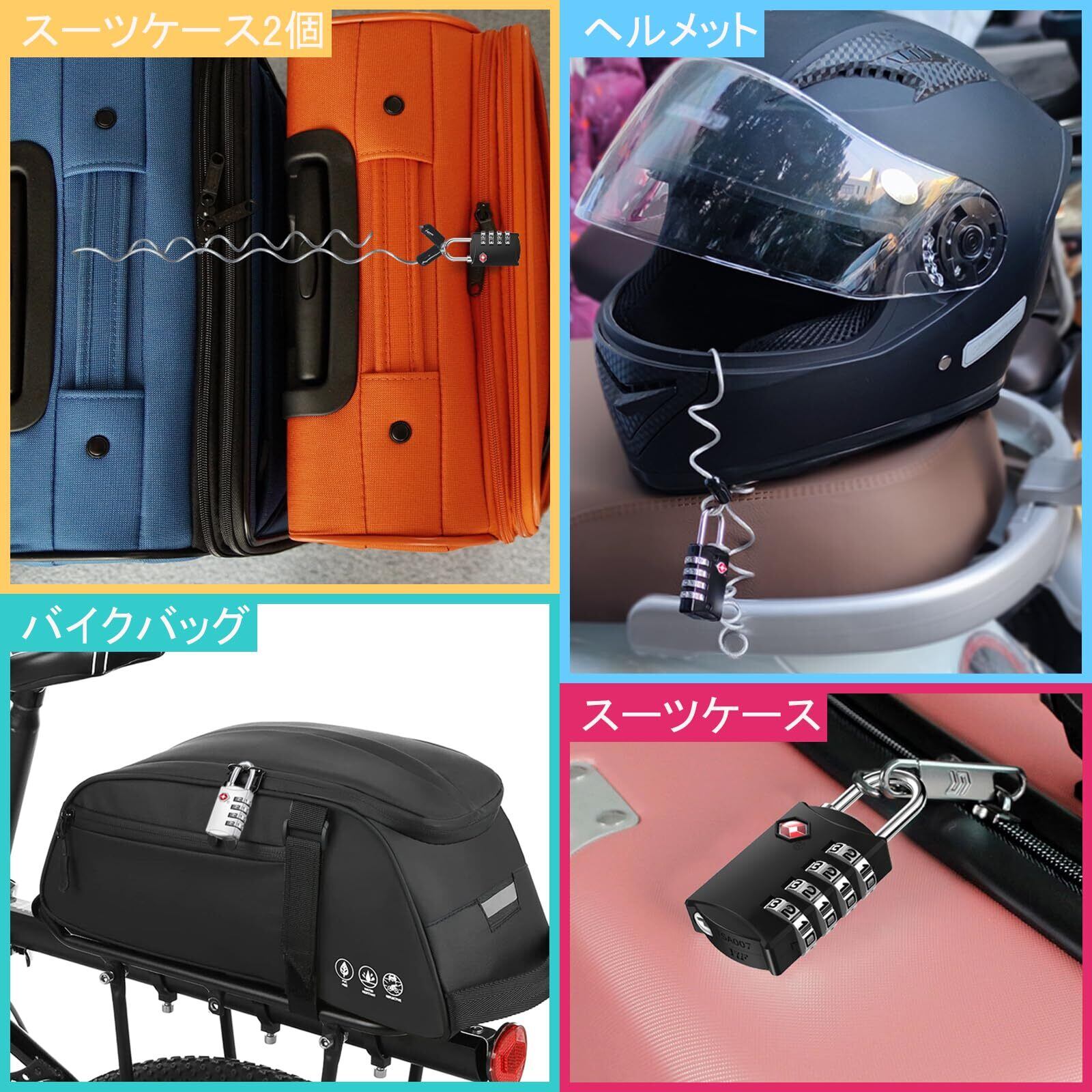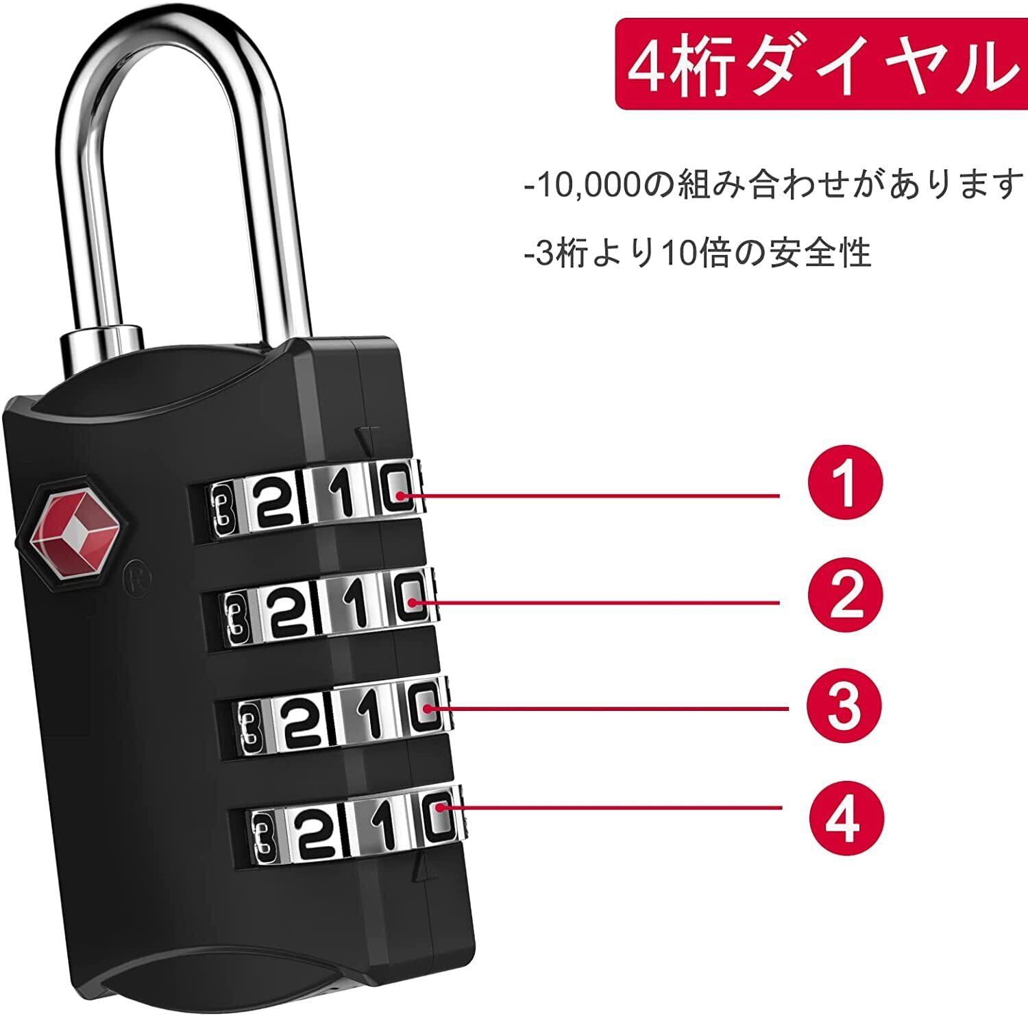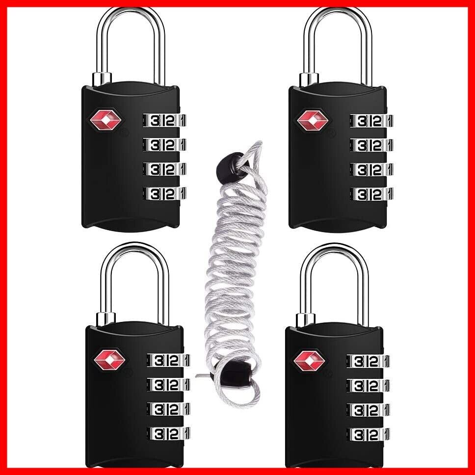 ZHEGE 4個 TSA ロック 南京錠 4桁ダイヤル式 ロック ワイヤータイプ 旅行用 安心 防犯グッズ