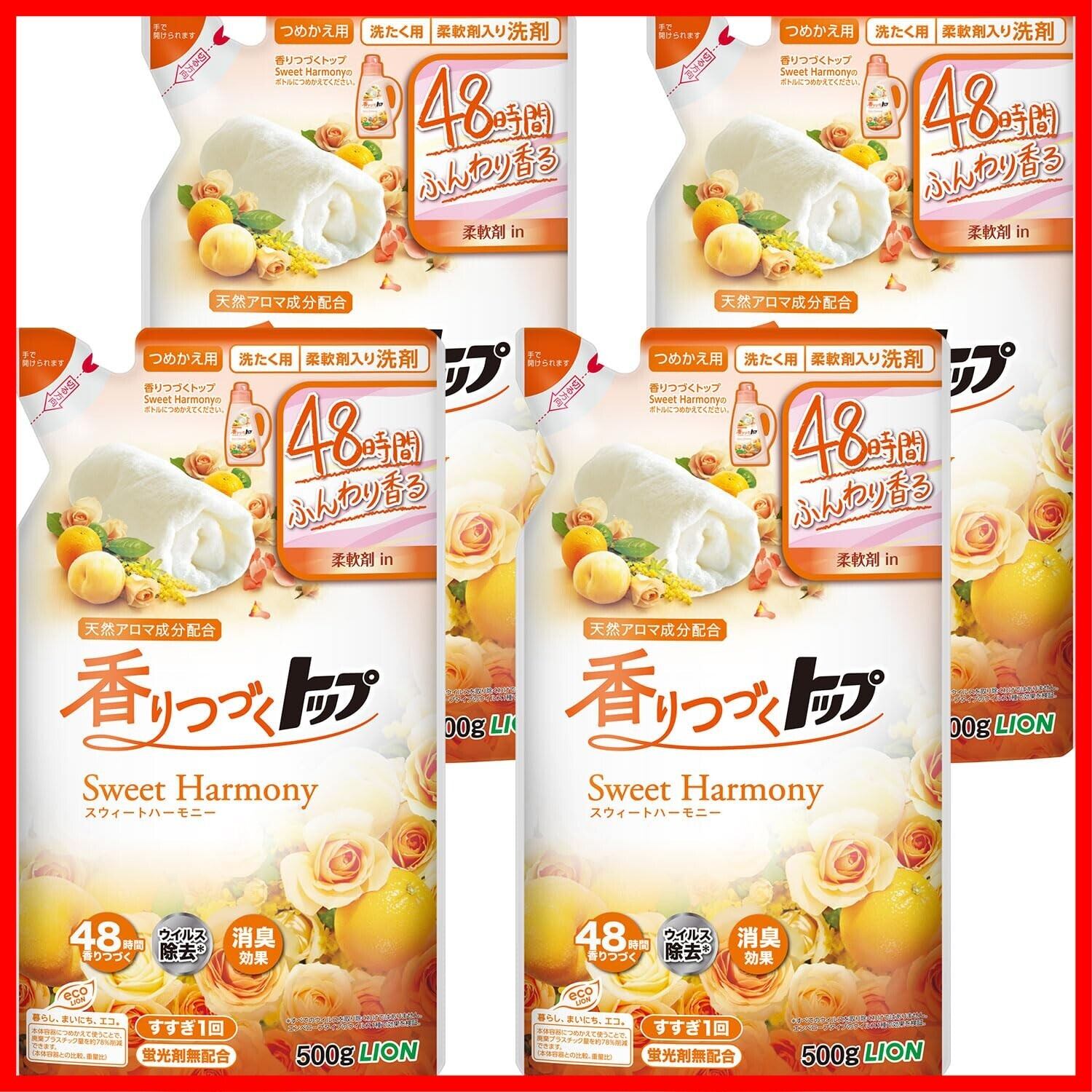 香りつづくトップ Sweet Harmony 液体洗剤 つめかえ用 500g×4個
