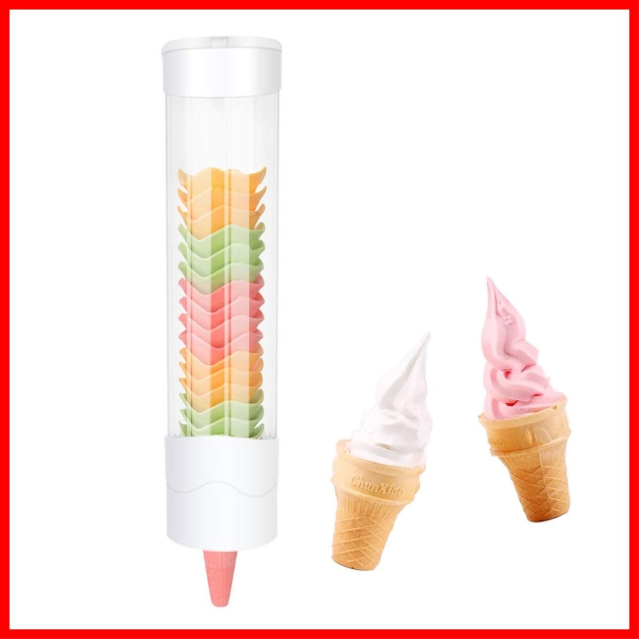 使いやすい~このコーンディスペンサーでカップ、コーンをお手軽に一つずつ取り出せます。