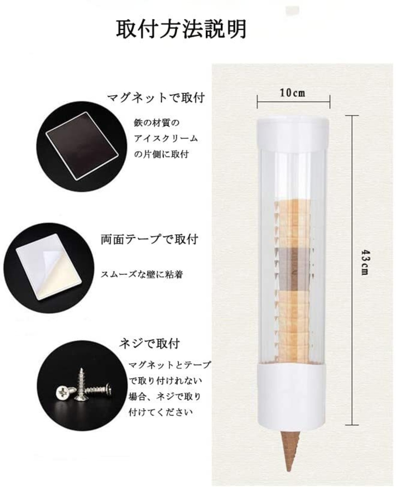 アイスクリームカップホルダー ソフトクリームコーンディスペンサー コーンカップディスペンサー 3way取付方法
