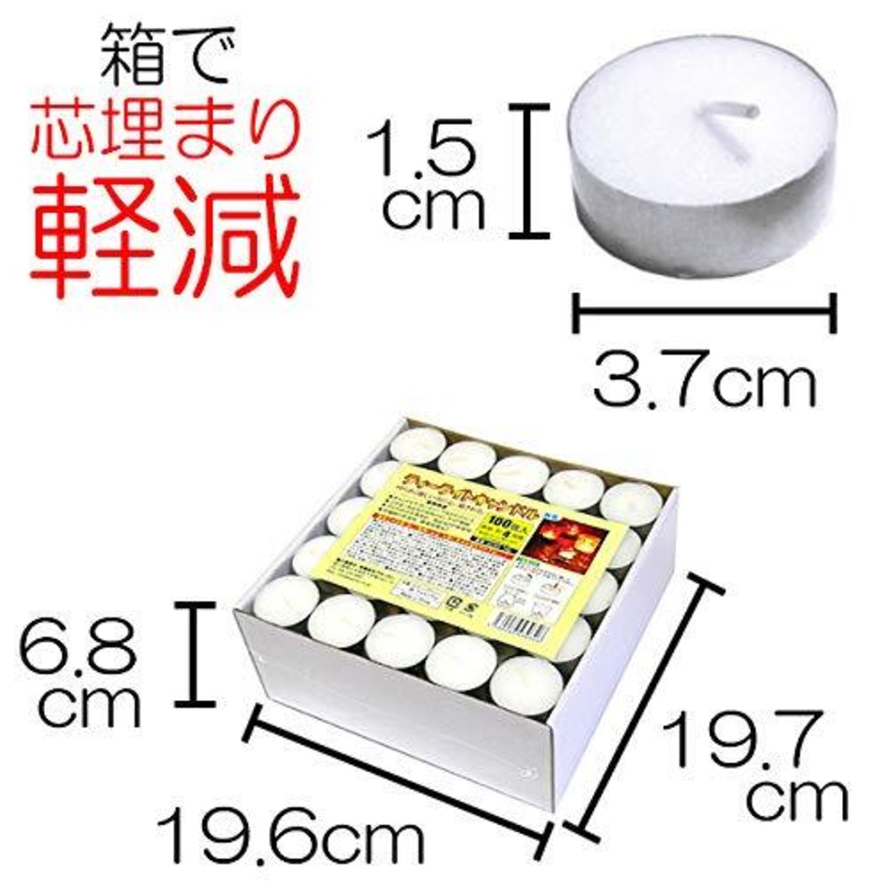 材質:ロウ(パラフィン)、綿、アルミニウム