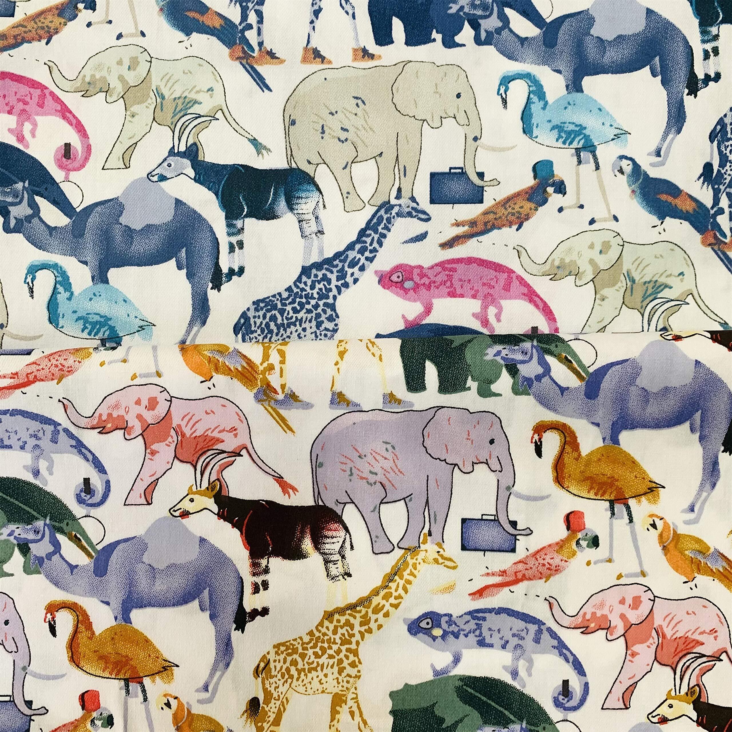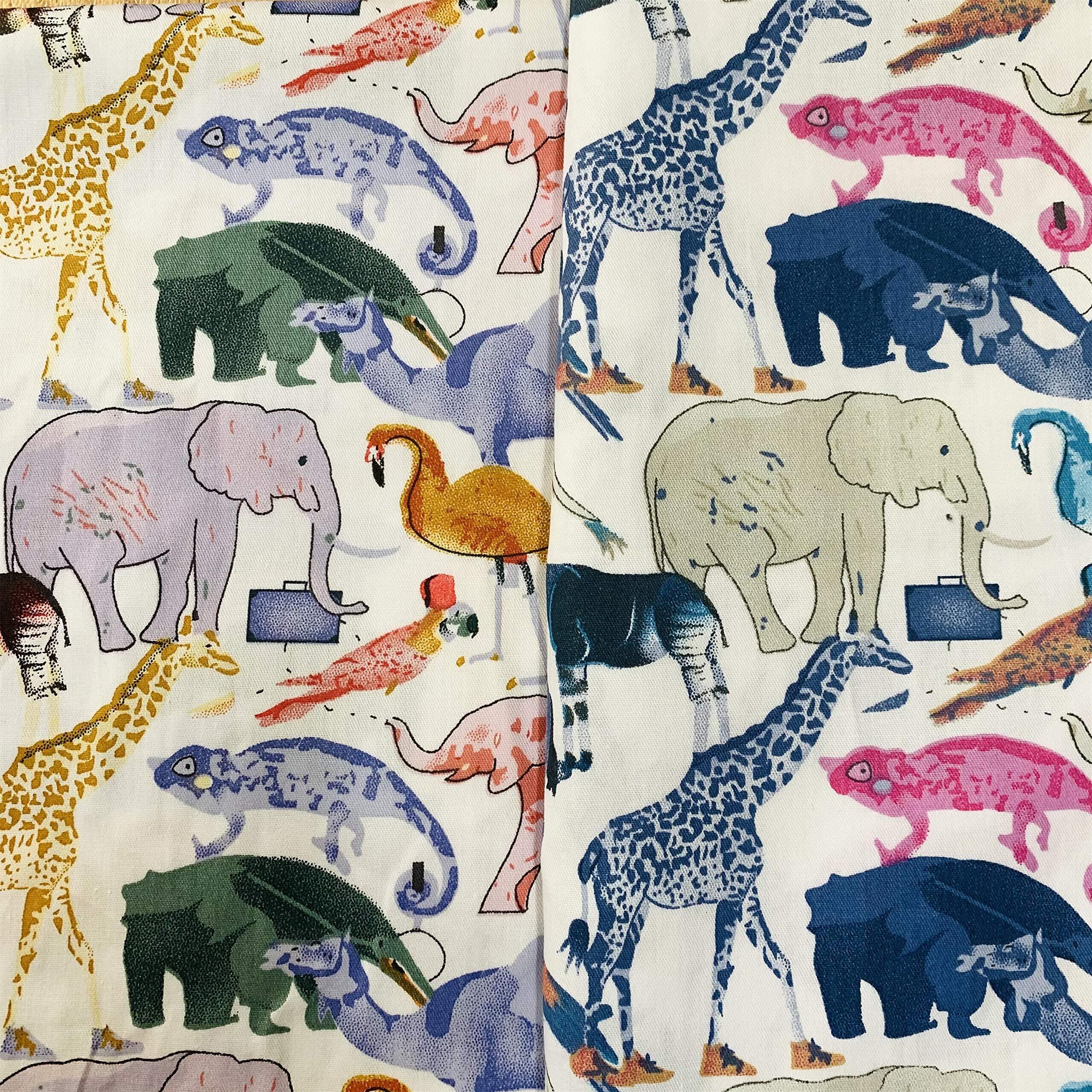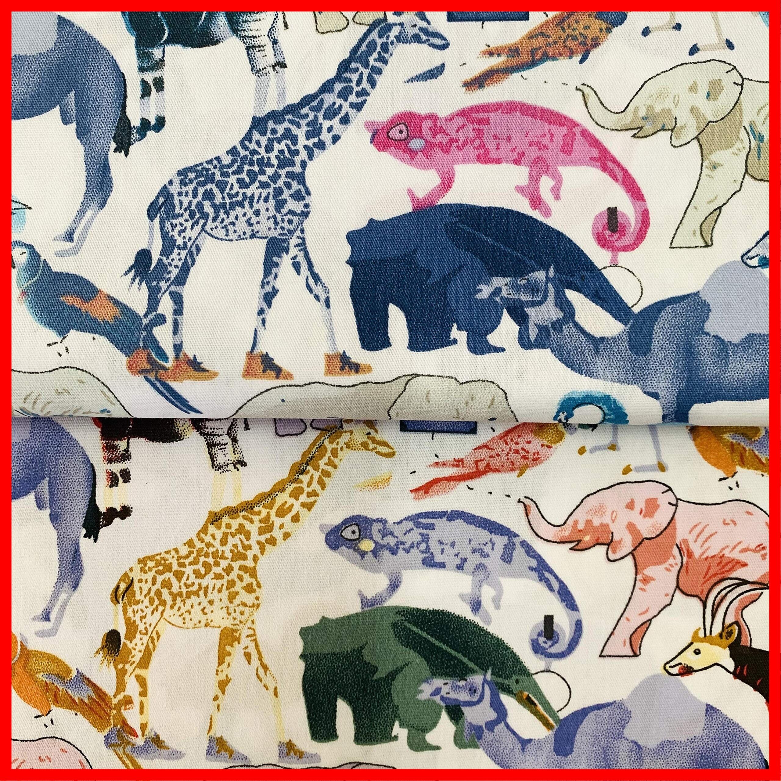 パッチワーク 手作り布 タペストリー ファブリックパネル カーテン生地 給食袋生地 手芸用 100%コーミング綿素材 ツイル織 動物柄 (50cm2色セット)