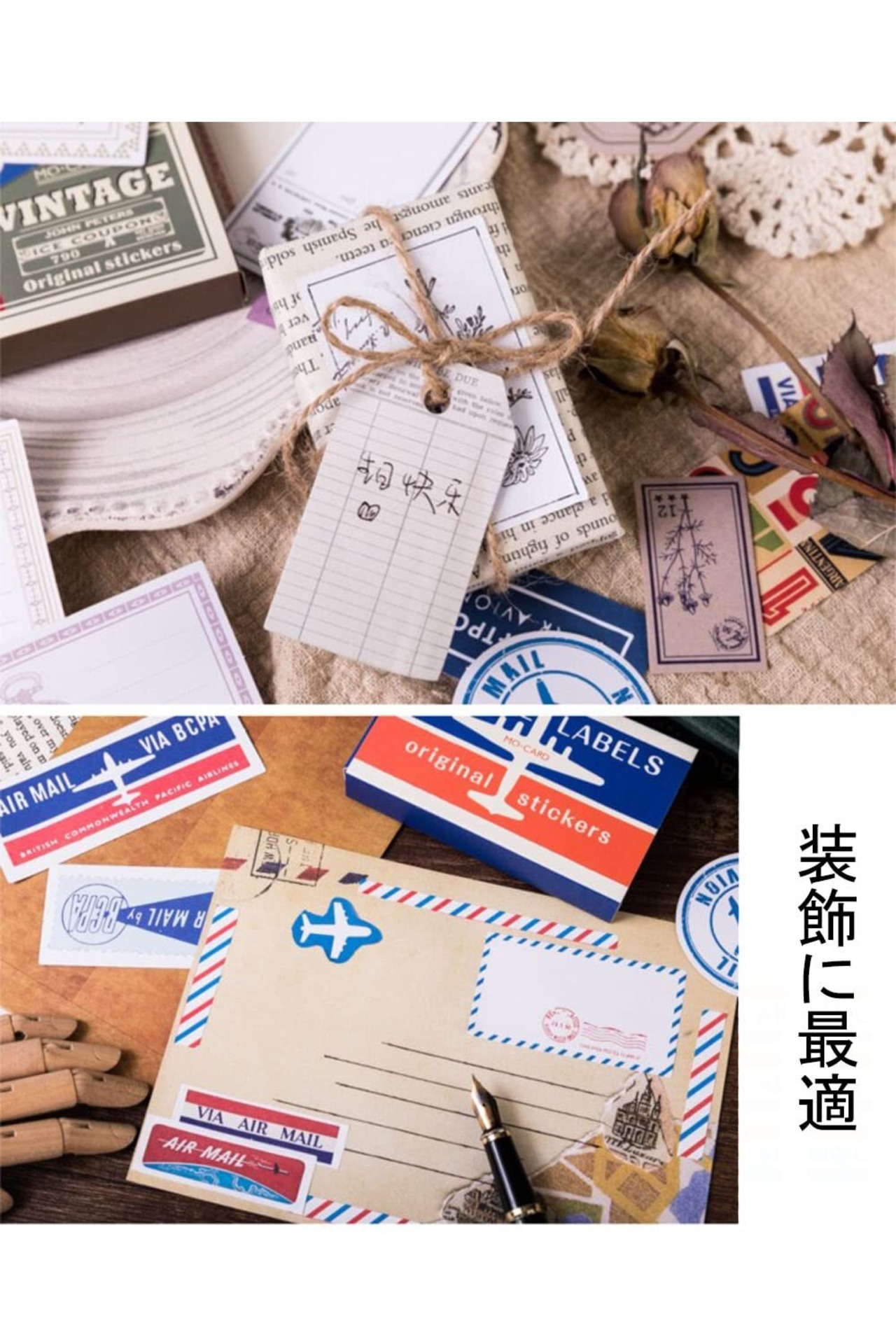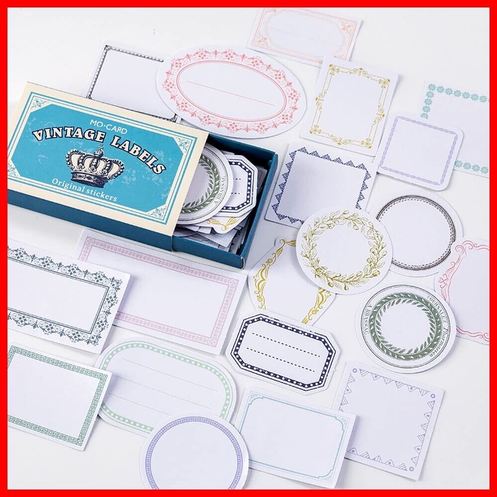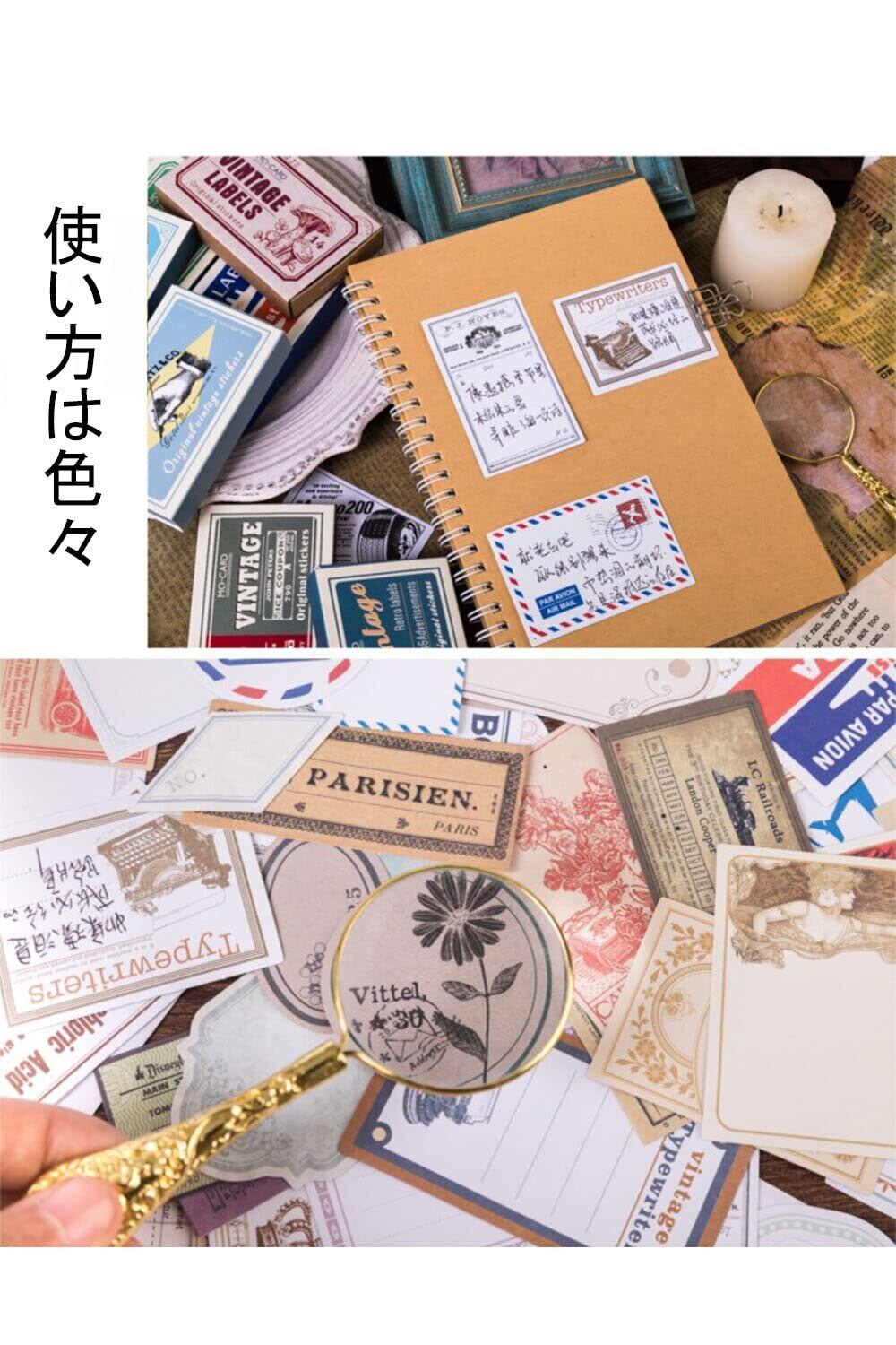 【使い方は色々】レトロな紙箱に入ったヴィンテージ風ラベルシールセットです。手帳デコ、はがき、カレンダー、日記帳、ガイド、お手紙、スマホケース、ハガキどこでも飾ることができます。