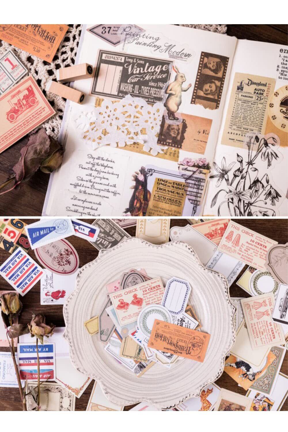 YINKE シール ステッカー フレークシール コラージュ 素材 アンティーク レトロ ミニメモ ジャンクジャーナル コラージュ 手帳ノート 手紙 (60枚)
