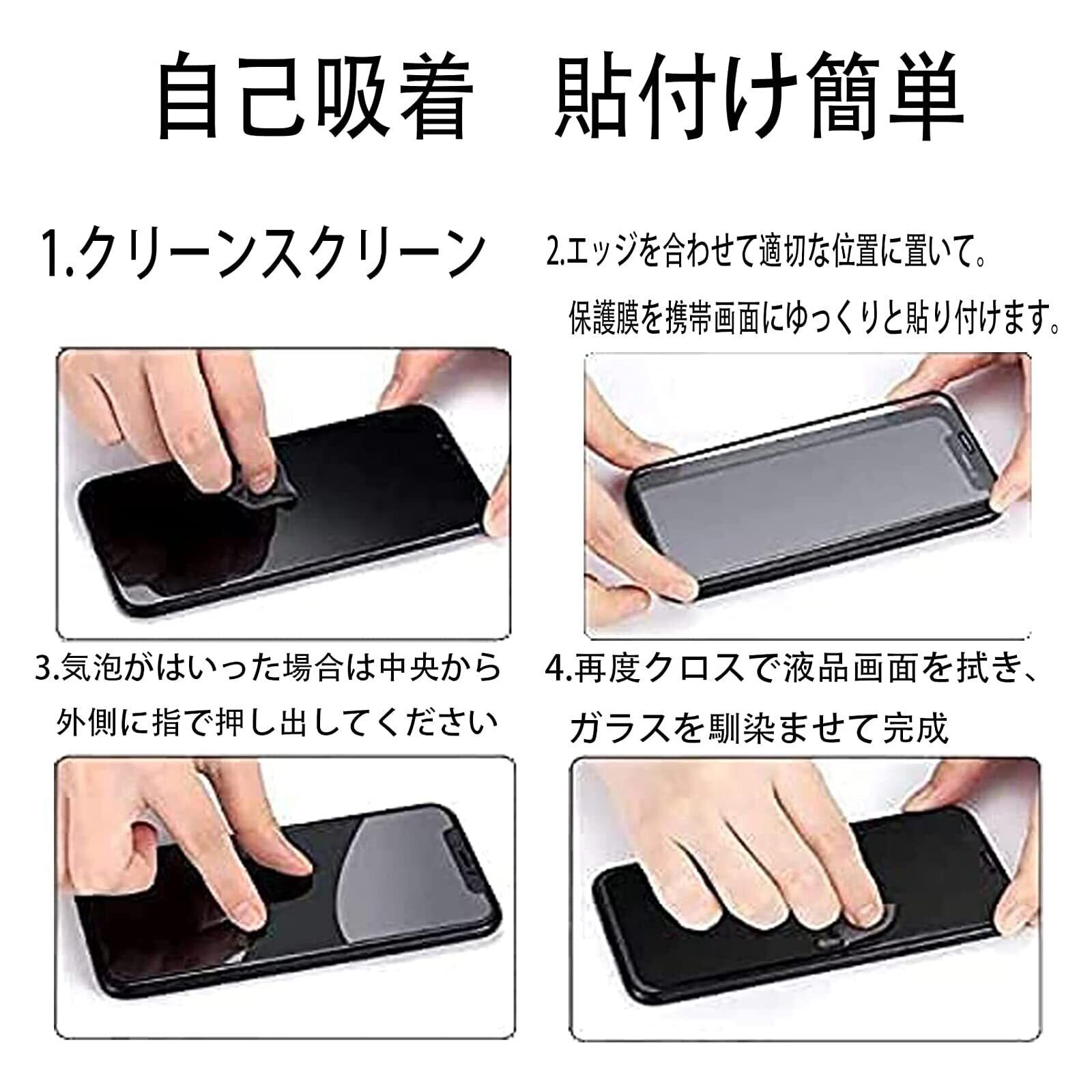 【貼り付けが簡単】自己吸着できるシリコン粘着シートで、簡単的に貼り付けます。ガラスを液晶に置くだけで自然に吸着、簡単に気泡が抜いて行くので、誰でも簡単、綺麗に貼ることができます。 丁寧に加工したので、気泡が入りにくくて、4つ簡単な手順のみで誰でも簡単に貼り付けることができます。