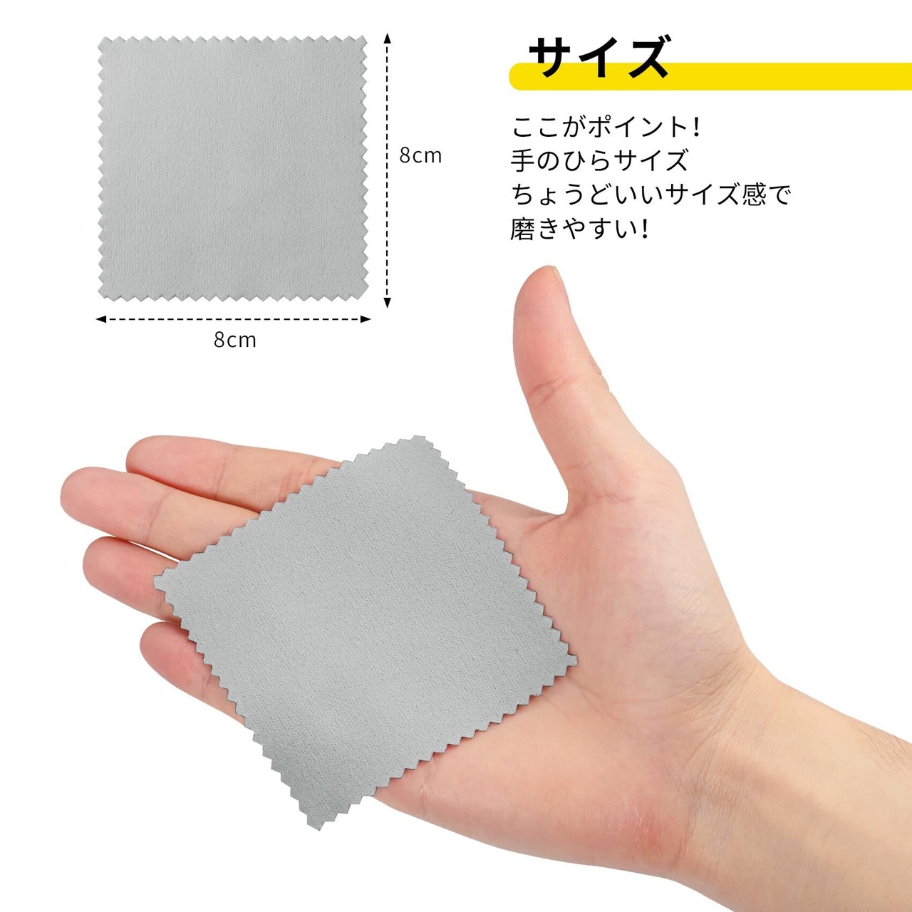貴金属お手入れ:お持ちの貴金属やシルバーアクセサリーのお手入れに大活躍のシルバークロスです。アクセサリーを磨くだけで、本来の美しい輝きを取り戻します。サイズ:8x8cm/10枚入り。日常的な清掃には効果的ですが、強い汚れや深い傷には対応できない場合がありますその場合は、専用のクリーナーやケア製品を併用してください
