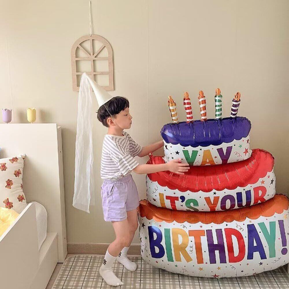 タペストリー 特大ケーキバルーン HAPPY BIRTHDAY 飾り付け 男の子 女の子 おしゃれ カラフル 可愛い プレゼント 飾り付け パーティー 写真背景 インストールツール付き