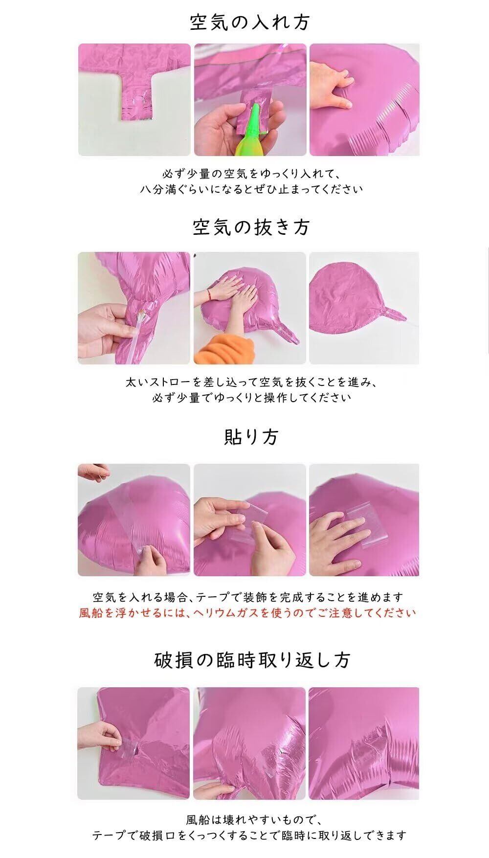 【使用方法】:ケーキバルーンは材質のため、空気を入れるのは八分満ぐらいまででいいです。そうしないと破裂しやすいです。使用後、空気の入れ口に太いストローを差し込むと空気はより抜けやすくなります、ゆっくりと少しずつ空気を抜けてください。