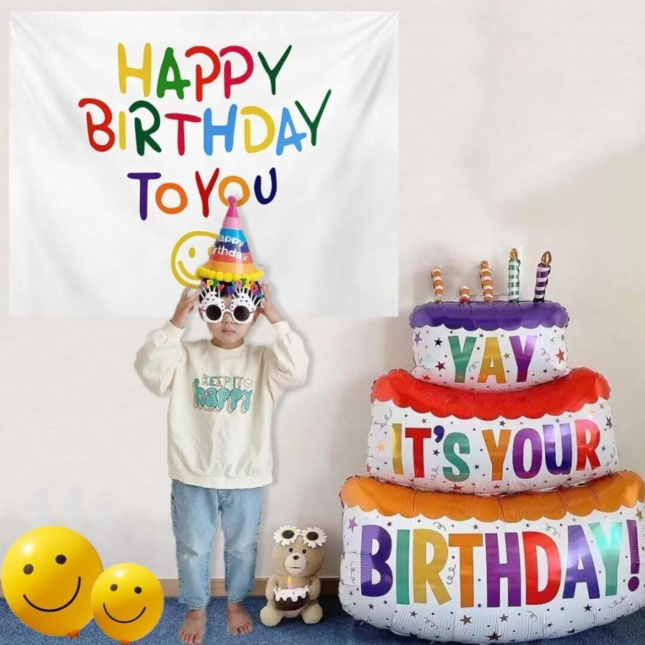 【サイズ】:タペストリー(約100*75cm)、ケーキバルーン(約102*63cm)