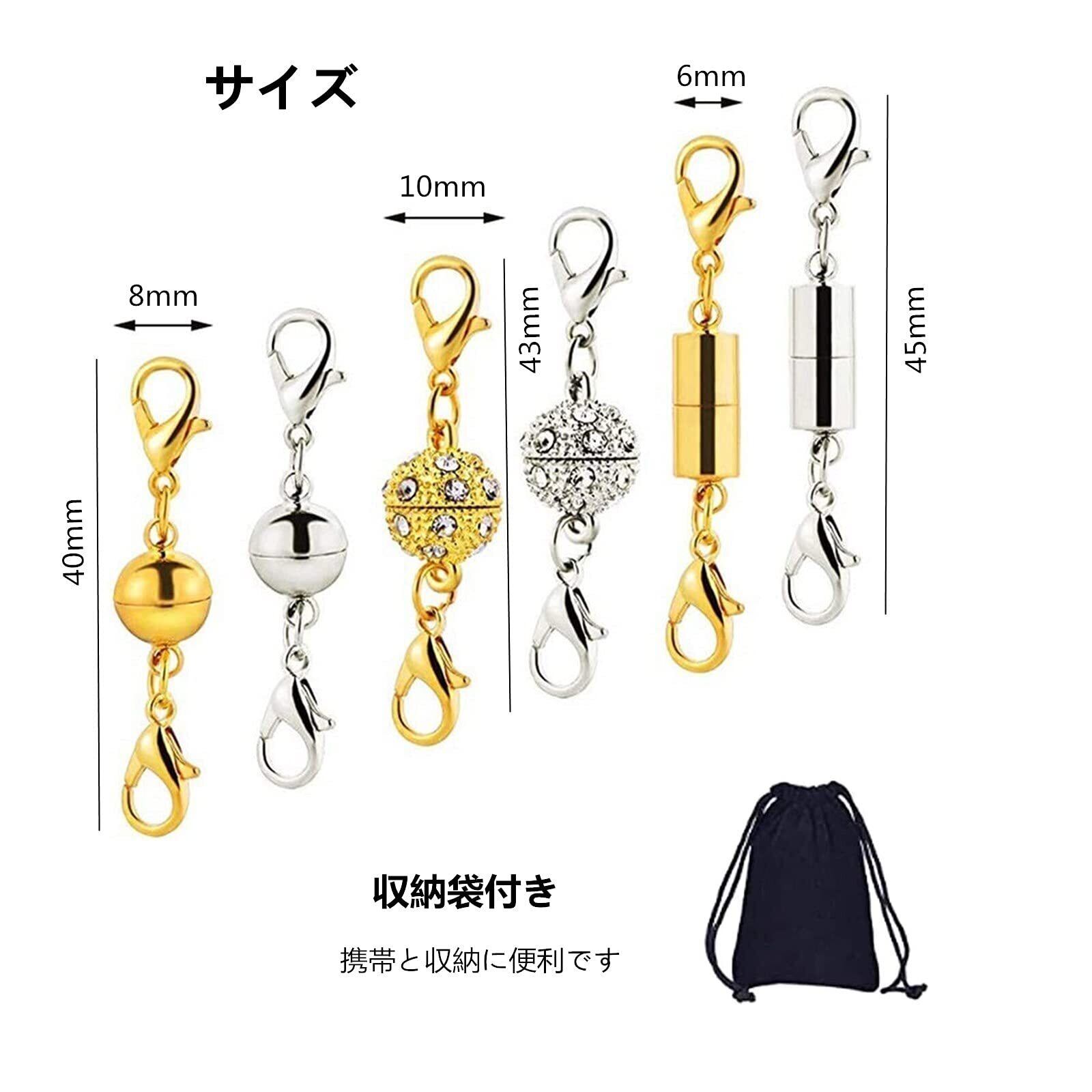 ネックレス 留め具 マグネット留め具 簡単装着 磁気クラスプ エンドパーツ ジュエリー用 延長用金具 DIY用 クラフト作り 収納袋付き 12個セット